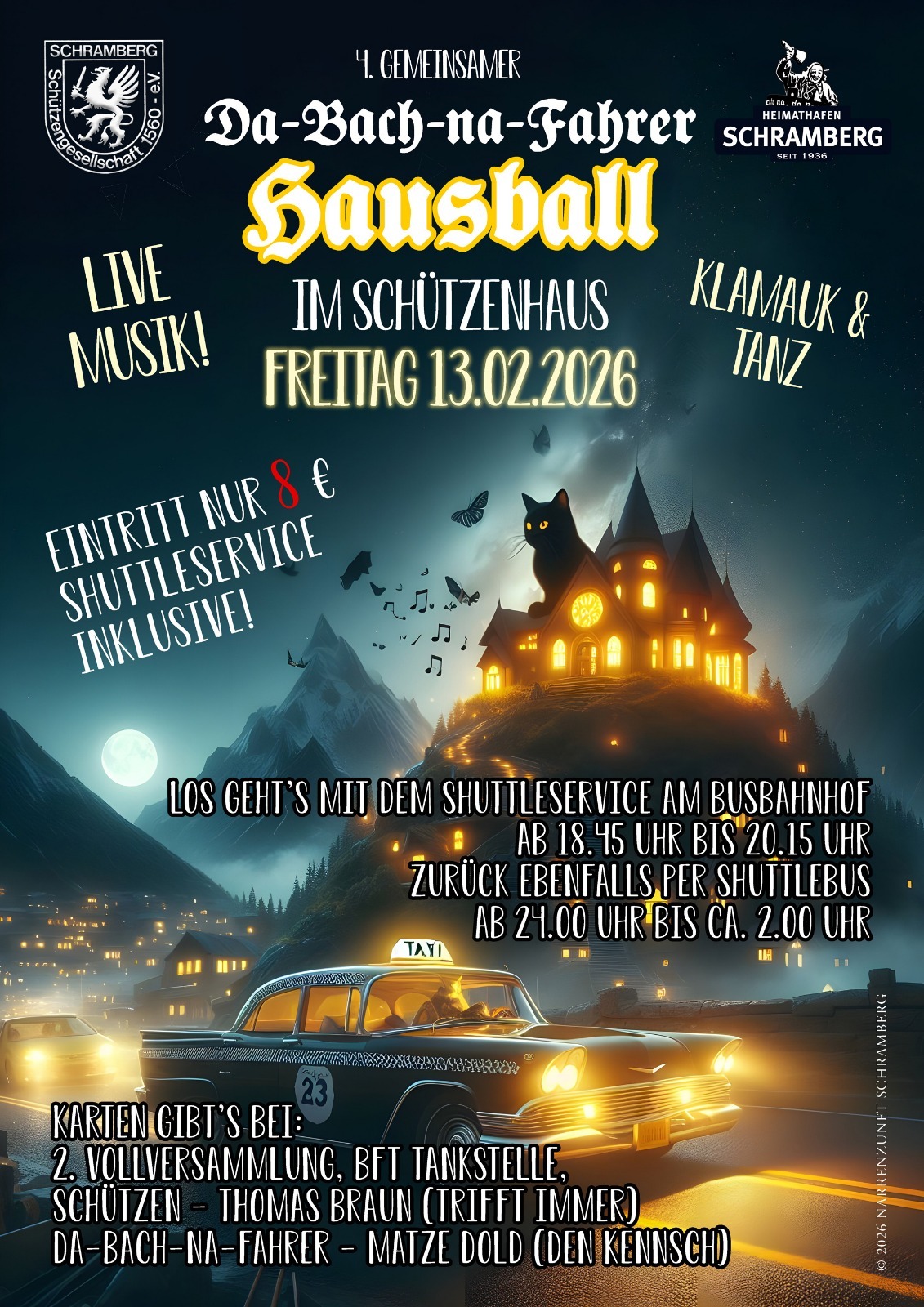 Alljährlicher Hausball der Schramberger Da-Bach-na-Fahrer! Weltbestes Programm, tolle Stimmung und Bewirtung. Jedermann/Jederfrau ist herzlich willkommen! |
